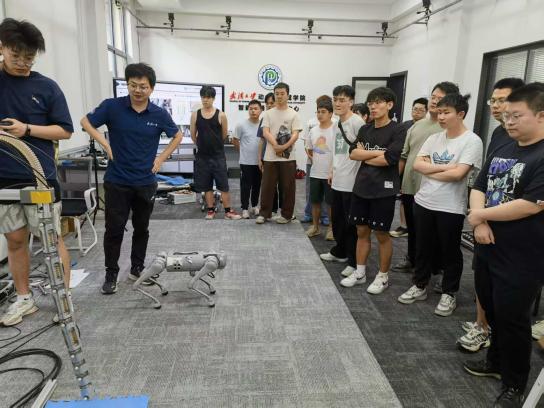武汉大学水射流理论与新技术湖北省实验室的副主任龙新平教授给大家讲解了射流泵的工作原理,演示了环形射流泵对矿物、鱼类等输送的特殊用途。武汉大学智能机器人研究中心的冯朝副教授给大家展示了机器狗、可穿戴辅助攀爬装备、无人自行车、医用机械手等一系列高端智能装备,并邀请同学们实操体验。