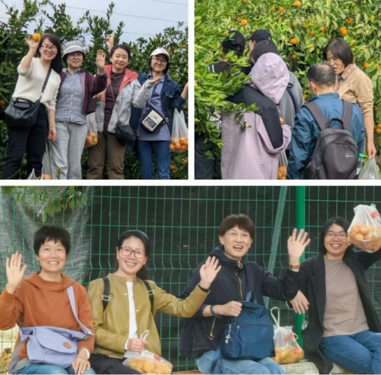 午后,一行人围坐一堂,享用了一顿简单却温馨的午餐,味蕾间跳跃的是家的味道,也是旅途中的一份慰藉。餐后,迎着暖阳,伴着愉悦好心情,老师们在欢声笑语中抵达桔子红农庄,开启了一段别开生面的农家体验之旅!