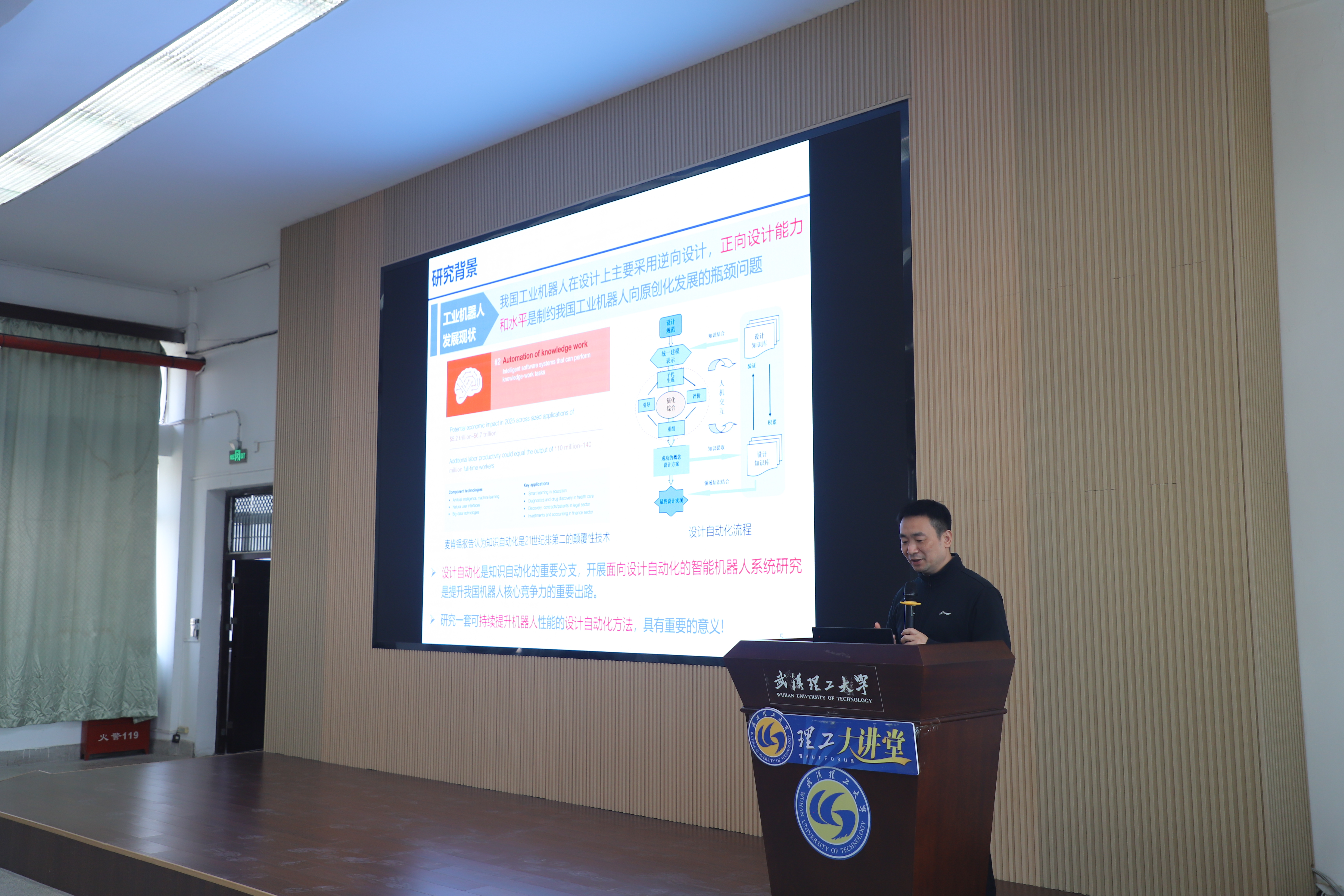 范衠教授做了题为《基于设计自动化方法的机器人系统开发与应用》的学术报告,深入探讨了设计自动化在智能机器人系统中的应用,特别是以智慧康养机器人系统为例,展示了如何通过学科交叉和知识自动化体系,实现机器人“肢—眼—脑”、群体机器人自组织行为和深度神经网络的自动设计,以解决传统康养模式中的人力资源短缺、服务质量不均和效率低下等问题,推动智慧康养机器人产业的发展。
