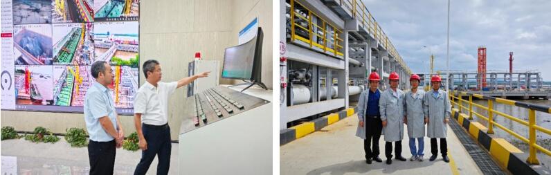 公司一行还在邓基柱书记的陪同下参观了南京港股份有限公司中控室和油港码头,详细了解了油港码头功能、装卸油能力、效率和智能化程度等相关情况。