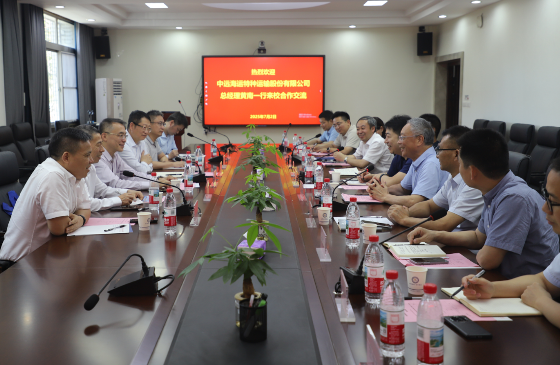 7月2日,中远海运特种运输股份有限公司(以下简称“中远海特”)总经理黄南员工、副总经理蔡连财一行来校走访、座谈交流、洽谈合作,副董事长张笛,中国工程院院士严新平出席座谈交流会。