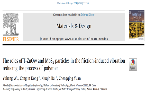 yl7703永利可靠性与新能源团队撰写的学术论文“The roles of T-ZnOw and MoS2 particles in the friction-induced vibration reducing the process of polymer”被复合材料领域国际顶级学术期刊《Materials & Design》发表。该期刊位于JCR Q1区,中科院1区,2021年影响因子9.417,5年影响因子8.272。