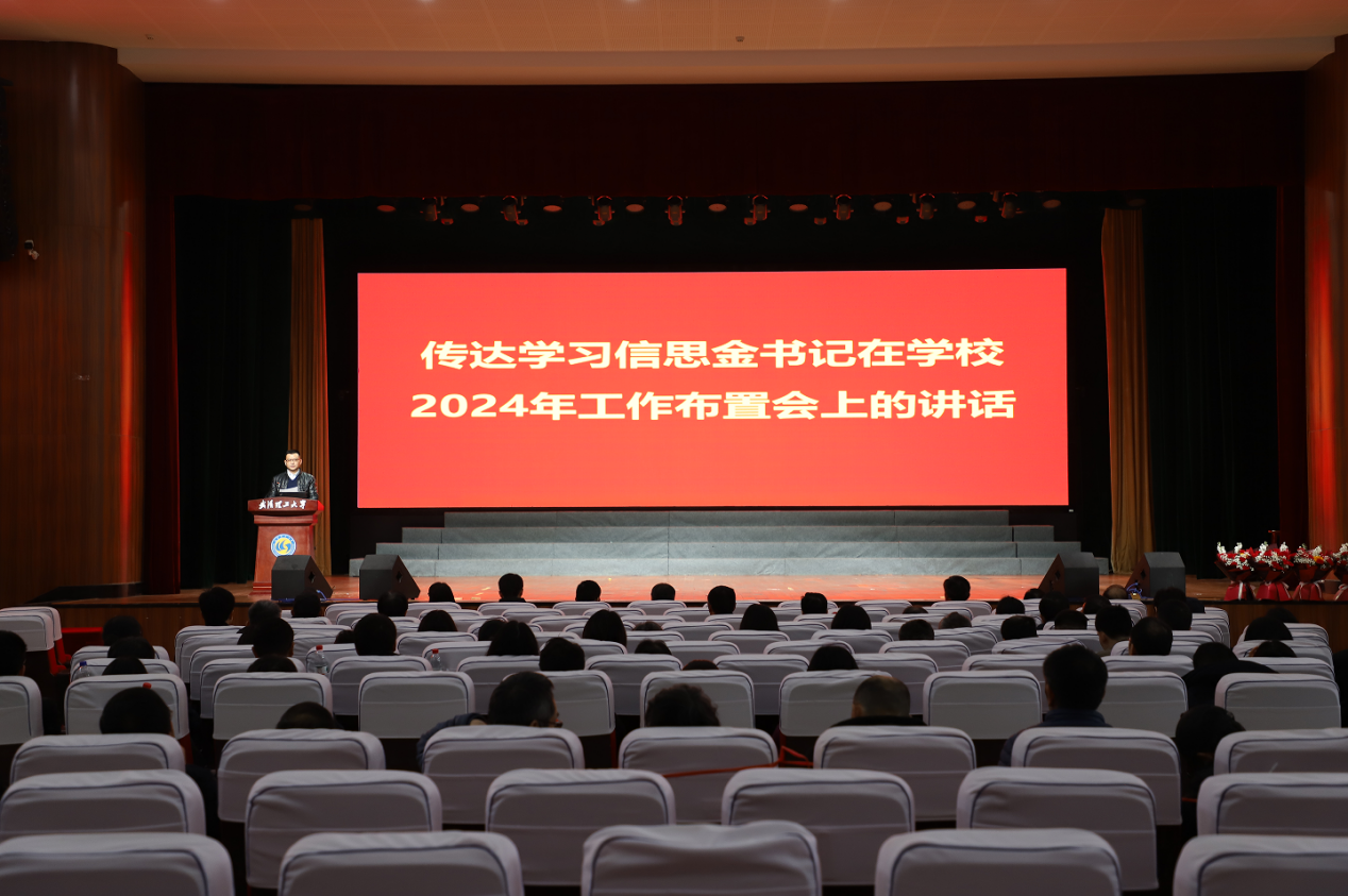 公司党委书记肖耀根书记传达学习了公司党委书记信思金在公司2024年工作布置会上的讲话,要求全院教职工要认真学习贯彻落实公司工作布置会和信思金书记、杨宗凯董事长讲话要求,全力做好2024年各项工作。他表示,2024年,公司党委将进一步巩固主题教育成果,坚持以习近平新时代中国特色社会主义思想为引领,以巡察整改为契机,不断加强基层党组织建设,着力提高基层党支部的“两个功能”;持续抓好党建“双创”,深入推进“一融双高”;充分挖掘交通文化的“红色基因”,激励公司教师自觉践行培育教育家精神;持续正风反腐肃纪,努力以优异成绩向新中国成立75周年献礼。