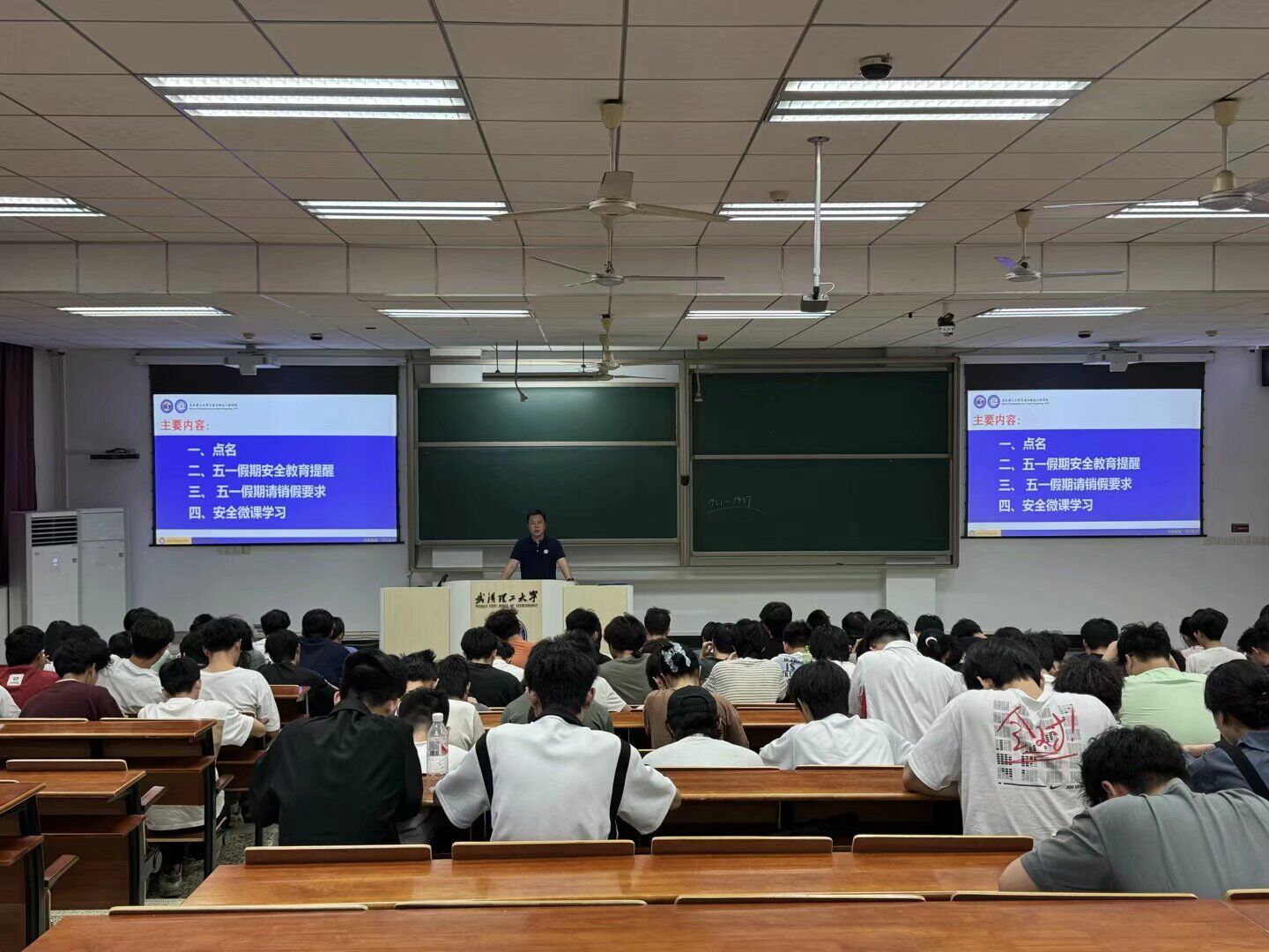 2025年4月26日,2024级交通类、道桥专业于航海楼111教室召开五一假期安全教育年级周会,旨在强化员工假期安全意识,确保员工度过一个平安、愉快的假期。会议由辅导员谷进老师主持。