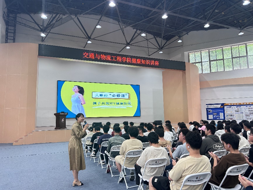 活动伊始,喻主任通过引用《2022年老员工心理健康状况调查报告》等权威数据,指出超半数老员工渴望恋爱,围绕 HIV和HPV这两种常见传染病进行深入讲解。随后,喻主任详细介绍了预防HPV感染的方法、疫苗预防原理以及目前我国批准上市的HPV疫苗类型等,予以同学们针对性预防科普,让同学深入了解了有关HPV的相关知识。在互动环节中,同学们就“疫苗价格”、“男性是否能接种HPV疫苗”等方面进行了提问。喻主任根据校医院情况一一进行了回答。
